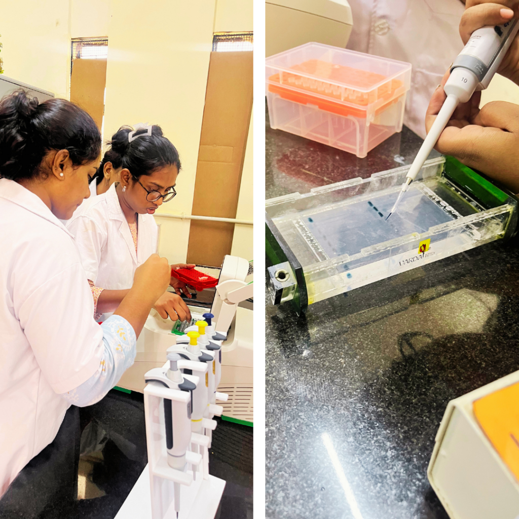 - Comprehensive Learning – From DNA extraction to PCR, gel electrophoresis, and bioinformatics.